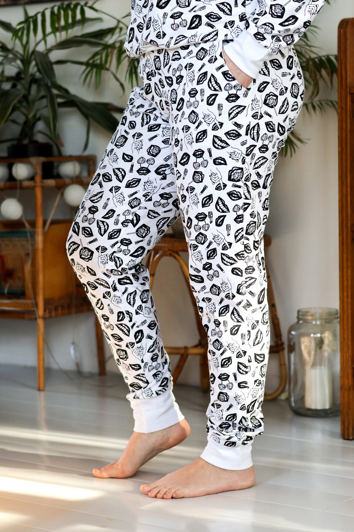 Rennot ja mukavat collegehousut POP-kuosilla
