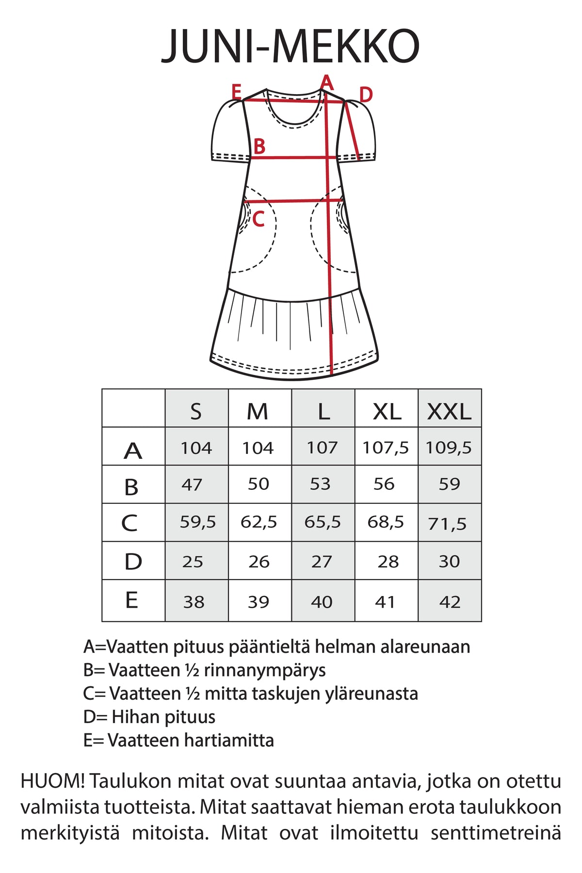 HUOM! Katso tarkemmat vaatteen mitat tuotekuvista.