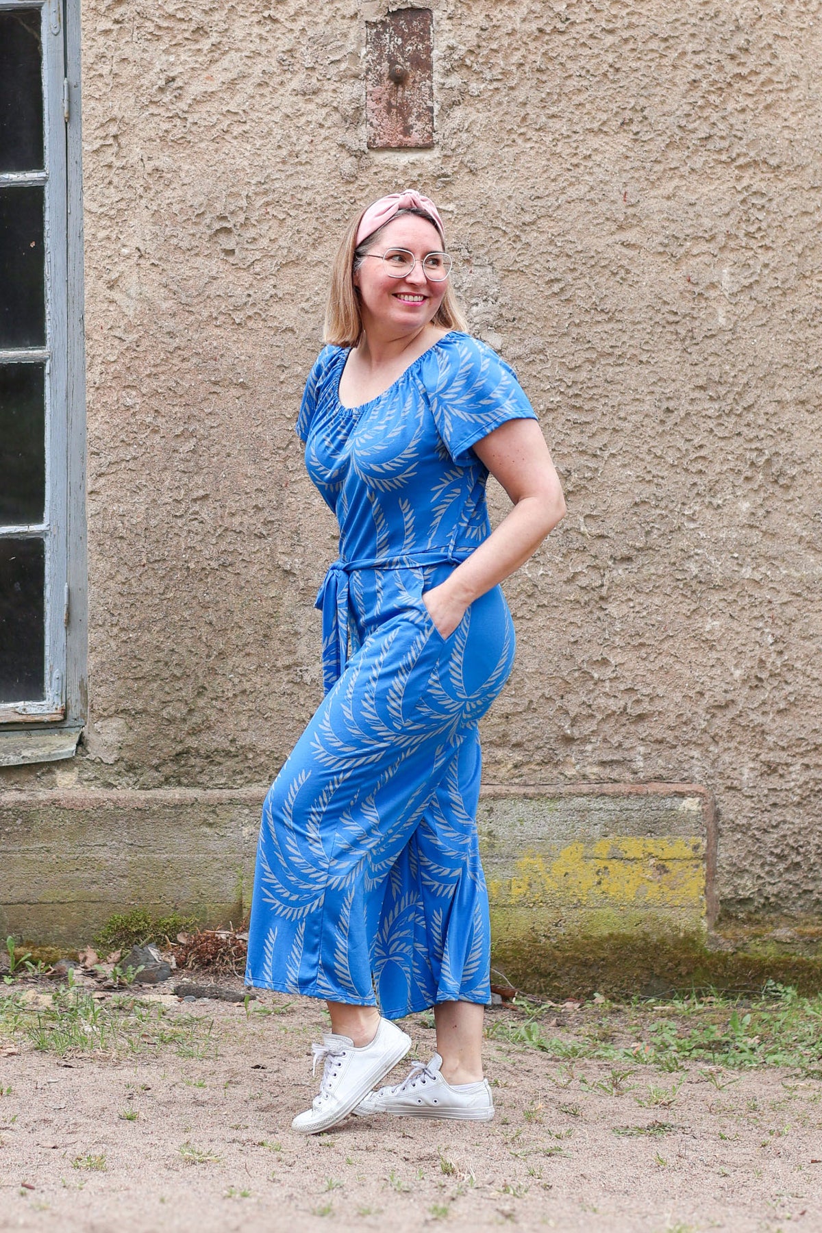Kivan rento, mutta tyylikäs ja naisellinen haalari, jossa kuminauhapääntie ja pienet  kauniit holkkihihat ja alaosana leveälahkeiset vajaamittaiset housut. Kivojen korkkareiden kanssa voit mennä haalarissa iltarientoihin tai tennareiden kera ihan minne vaan ja mikä parasta - näytät siinä aina hyvältä! Vyötäröllä vyölenkit, leveä vyö ja ihanan rennot taskut. Pääntiellä olevan kuminauhan ansiosta haalari on helppo pukea. Pue haalarin alle talvella poolo ja sukkikset :) Haalarissa on kaunis Siivet-kuosi, joka Maija Nuppulan suunnittelema ja Suomessa painettu.