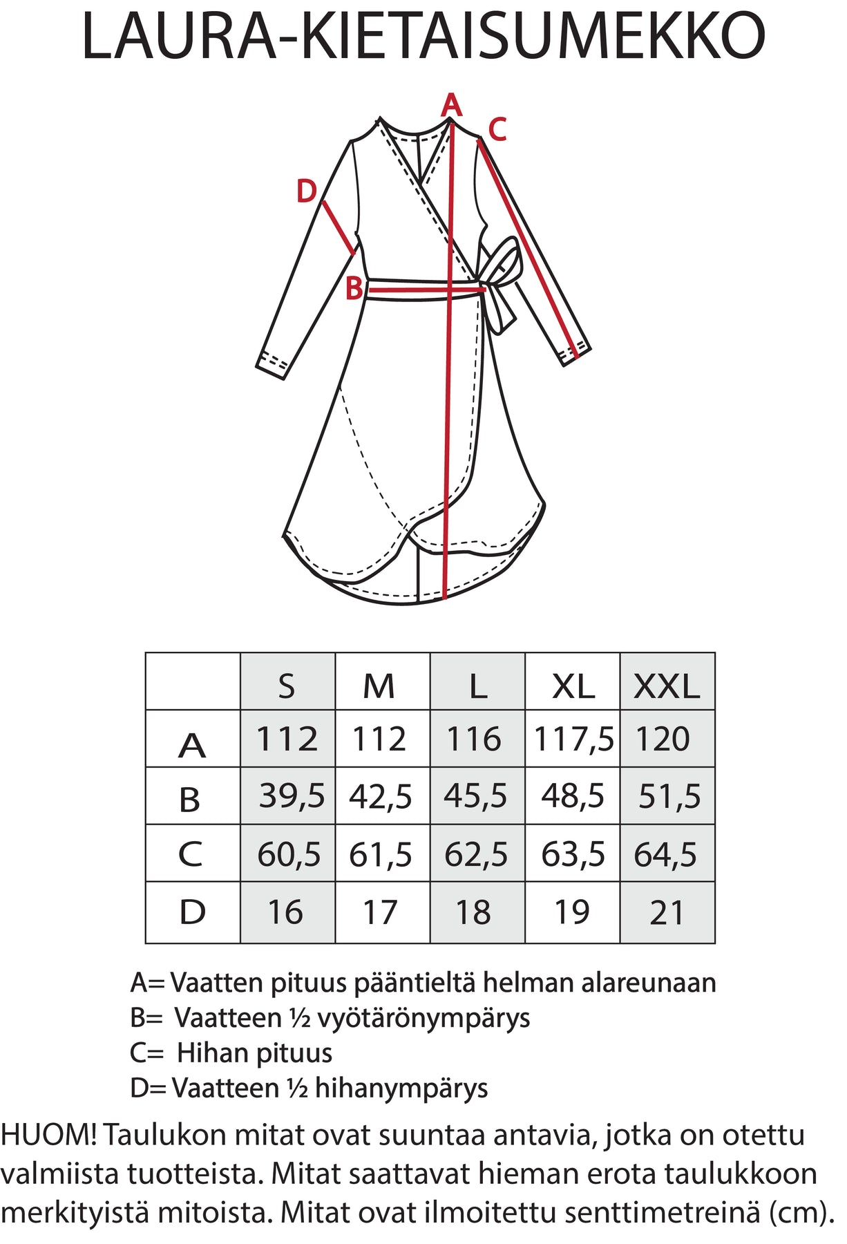 HUOM! Katso tarkemmat vaatteen mitat tuotekuvista.