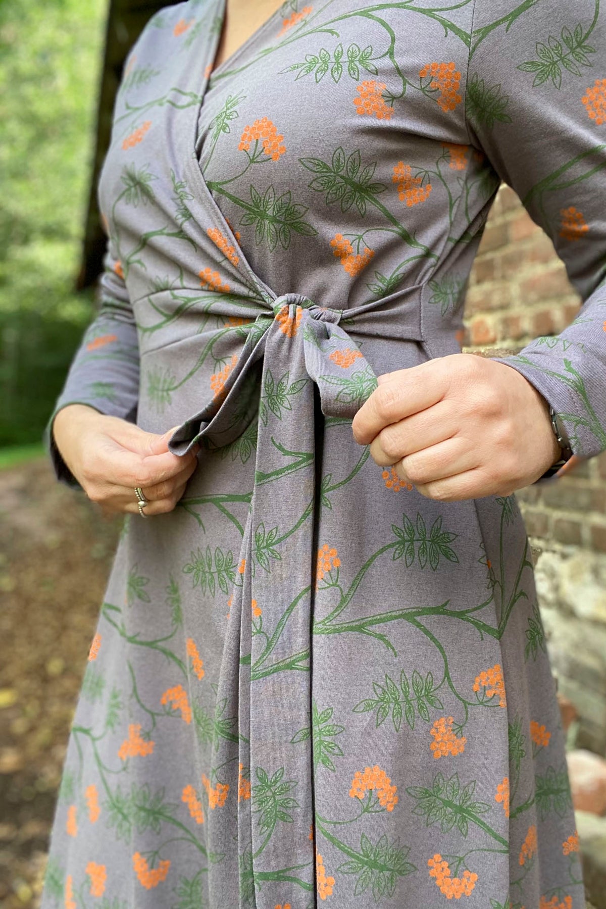 Naisellinen ja mielettömän kaunis kietaisumekko on yksi suosituimmista tuotteistamme! Kietaisumekossamme etukappaleen alapala on ommeltu sivusaumaan kiinni, eli mekko aukeaa edestä muttei kokonaan. Kietaisumekossa on on kaareva helma, sekä leveä vyö. Kietaisumekon leikkaus sopii monelle, sillä sen istuvuutta voi säädellä vyön ansiosta ja se sopii erinomaisesti myös esimerkiksi imettäville äideille. Kietaisumekossa on upea, yrittäjä Maija Nuppulan suunnittelema Pihlajanmarja-kuosi, joka on painettu Pälkäneellä.