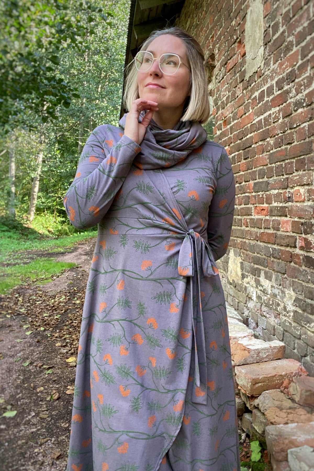 Naisellinen kietaisumekko Pihlajanmarja-kuosilla