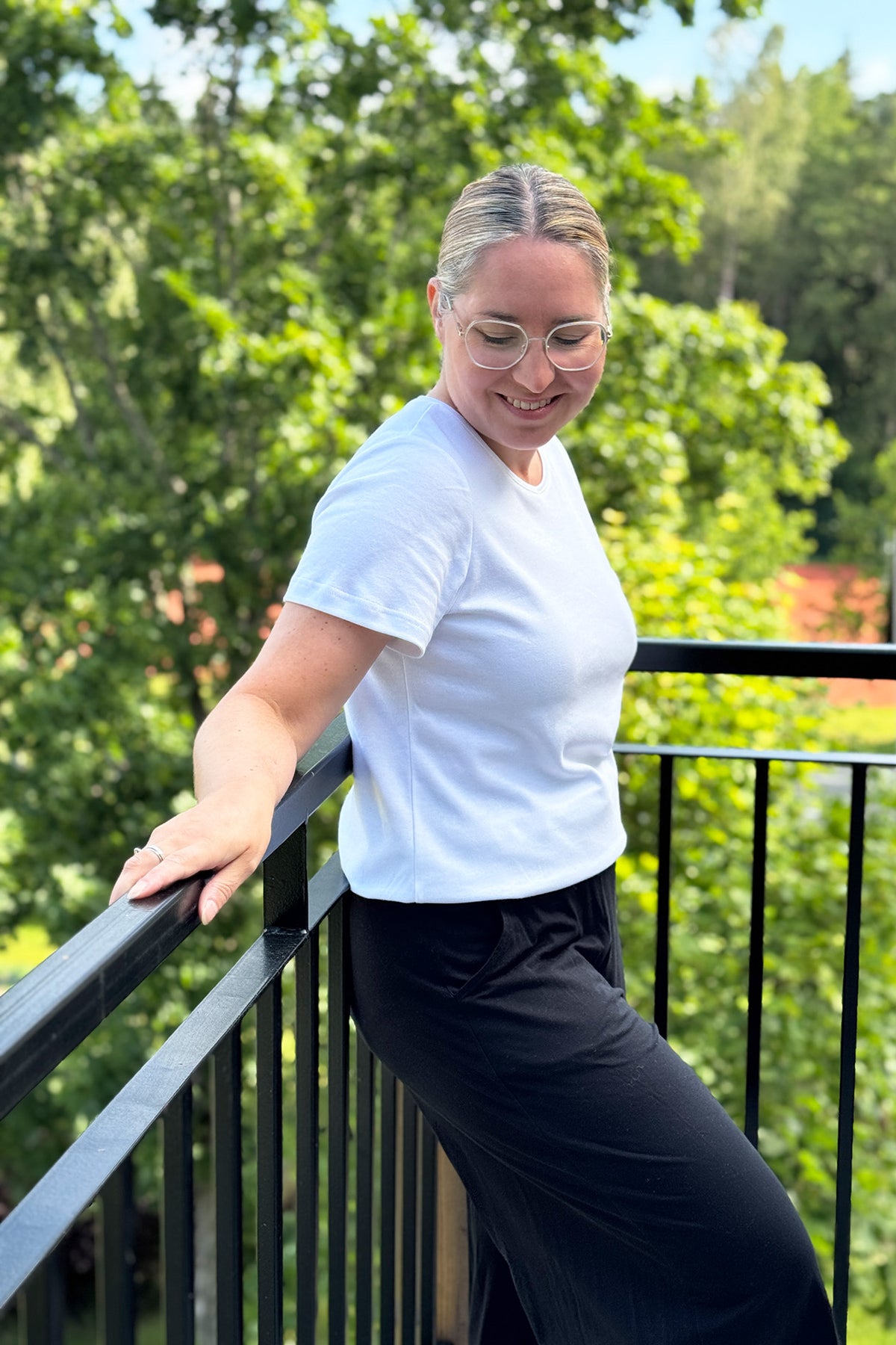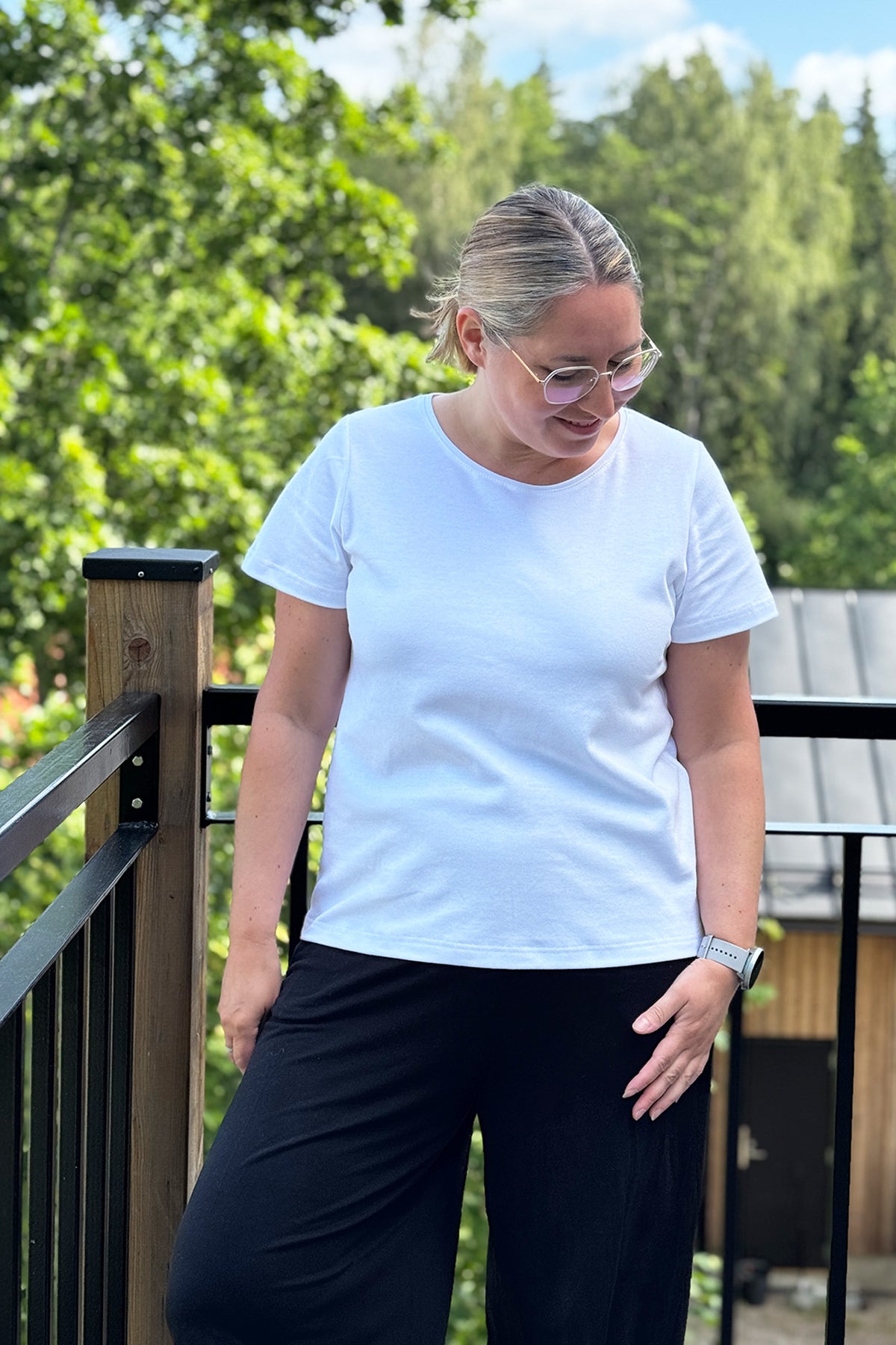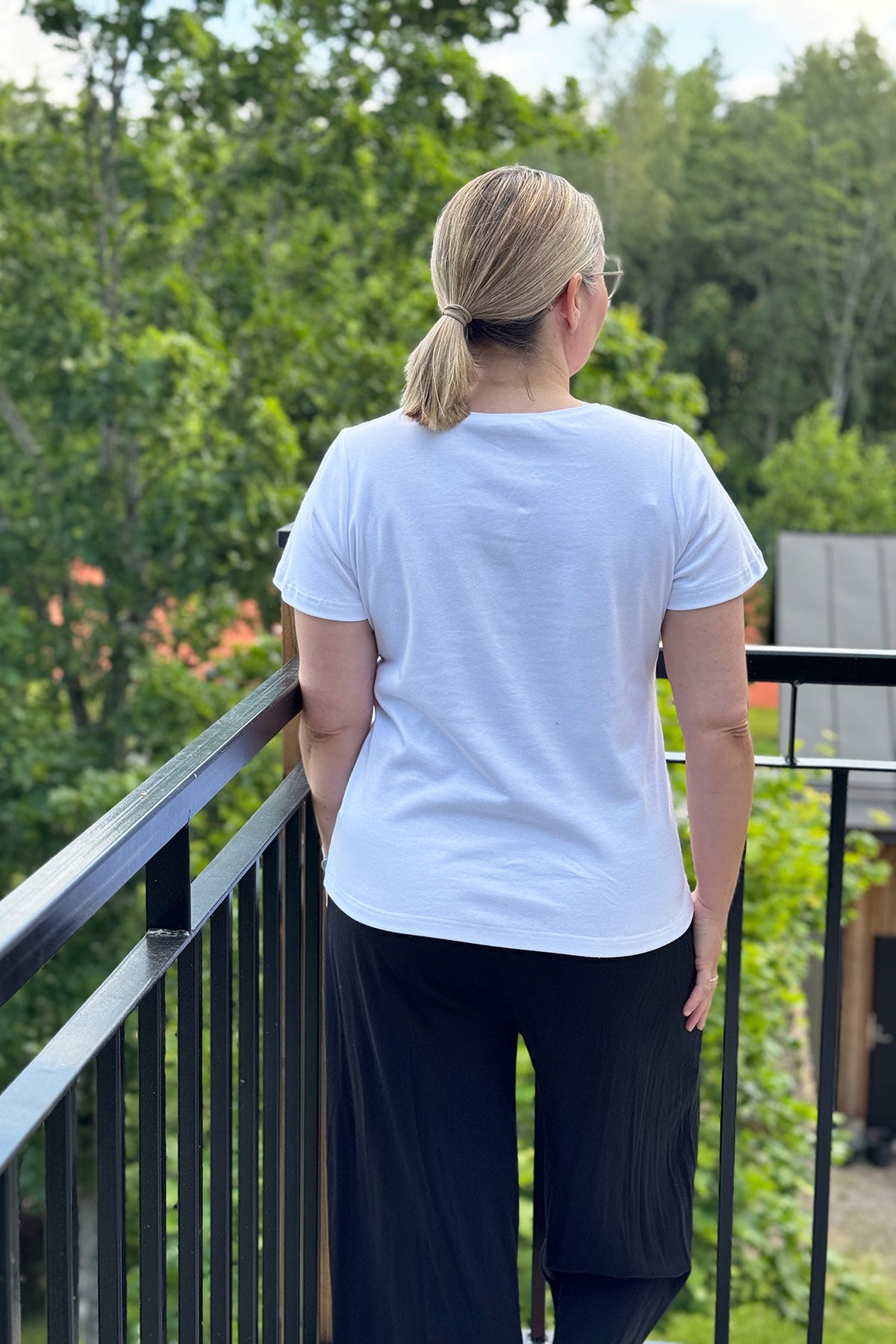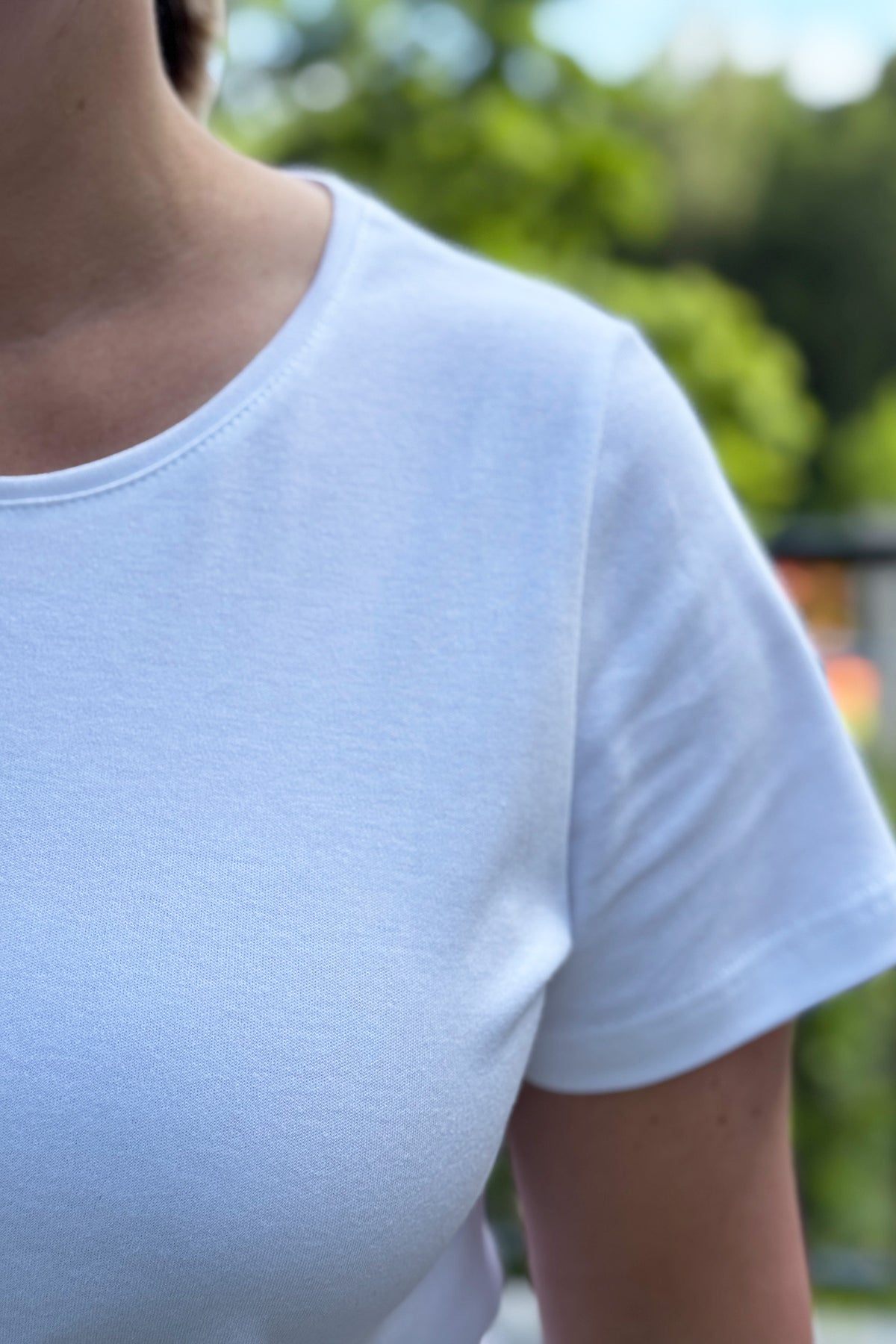 Meidän klassikkotuotteemme! Yksinkertainen naisten pusero, jossa lyhyet suorat hihat ja o-pääntie. Uutta kaunis ja viimeistelty pääntie tereellä. Tämä t-paita on monikäyttöinen, sillä voit yhdistää sen moneen eri asuun! Pue se farkkujen, hameen tai vaikka mekon kanssa. Cropatumman puseron saat, kun taitat helmaa tai laitat helman hameen tai farkkujen sisälle. Tämä pusero sopii erinomaisesti meidän Jade-housujen kanssa, ja yhdessä voit pukea kyseisen asukokonaisuuden vaikkapa töihin, arkeen ja rentoon juhlaan.