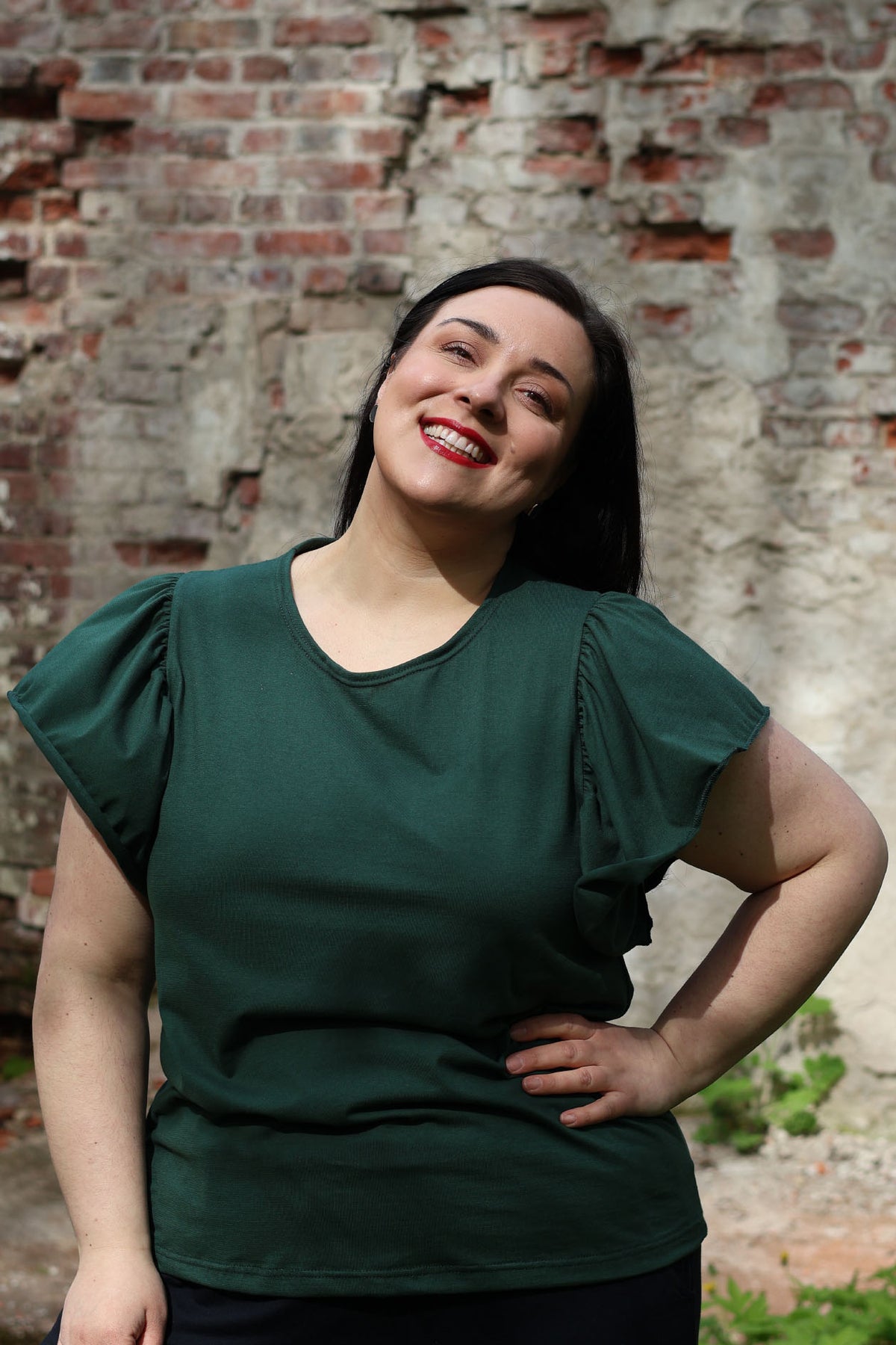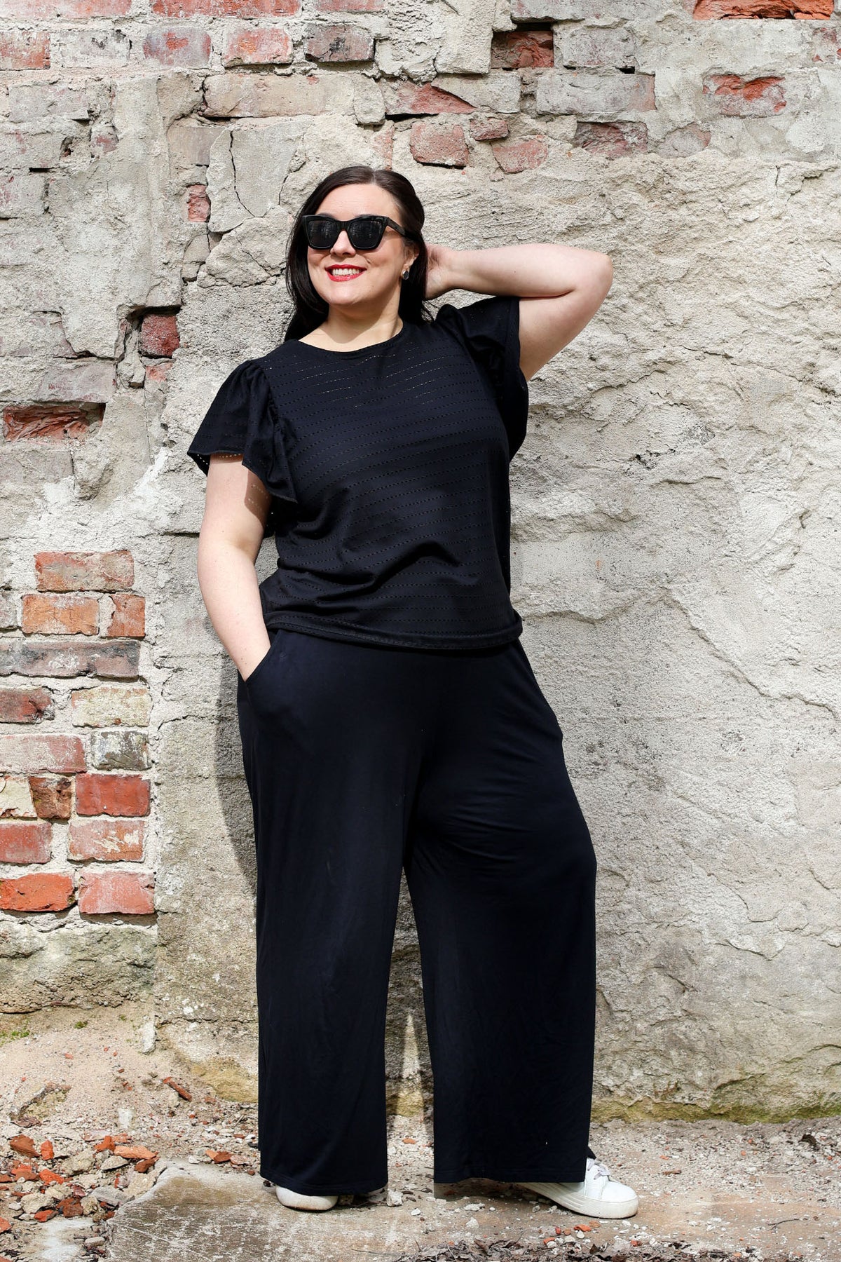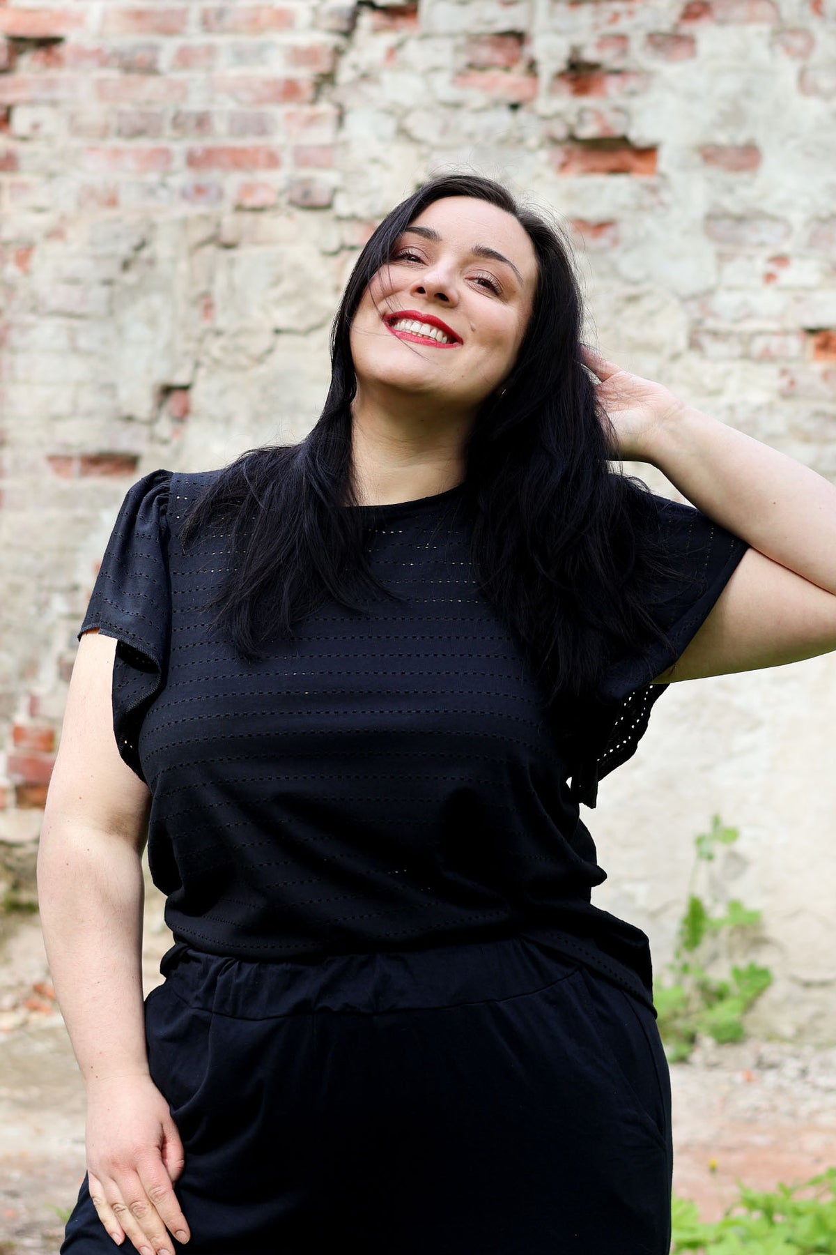 Kaunis pusero, jossa naiselliset röyhelöhihat. Hihansuu on väljä, joka on mukava kesän lämpimillä keleillä. Se näyttää samalla kuitenkin hyvältä ja kauniit laskostetut hihat tuovat asuun herttaista tyttömäisyyttä. Pue puseron kanssa housut tai hame, pue sellaisenaan alaosan päälle tai laita helmaa alaosan sisään, kumpikin näyttää hyvältä! Julia-neulospusero sopii sekä arkeen että juhlaan sen kauniin mallin ansiosta. Etenkin musta reikäraitaneulos tuo asuun mielenkiintoisuutta materiaalin tekstuurin ansiosta. Vihreä Julia-pusero sopii enemmän arkeen ja on sävyltään enemmän lämmin kuin kylmä.