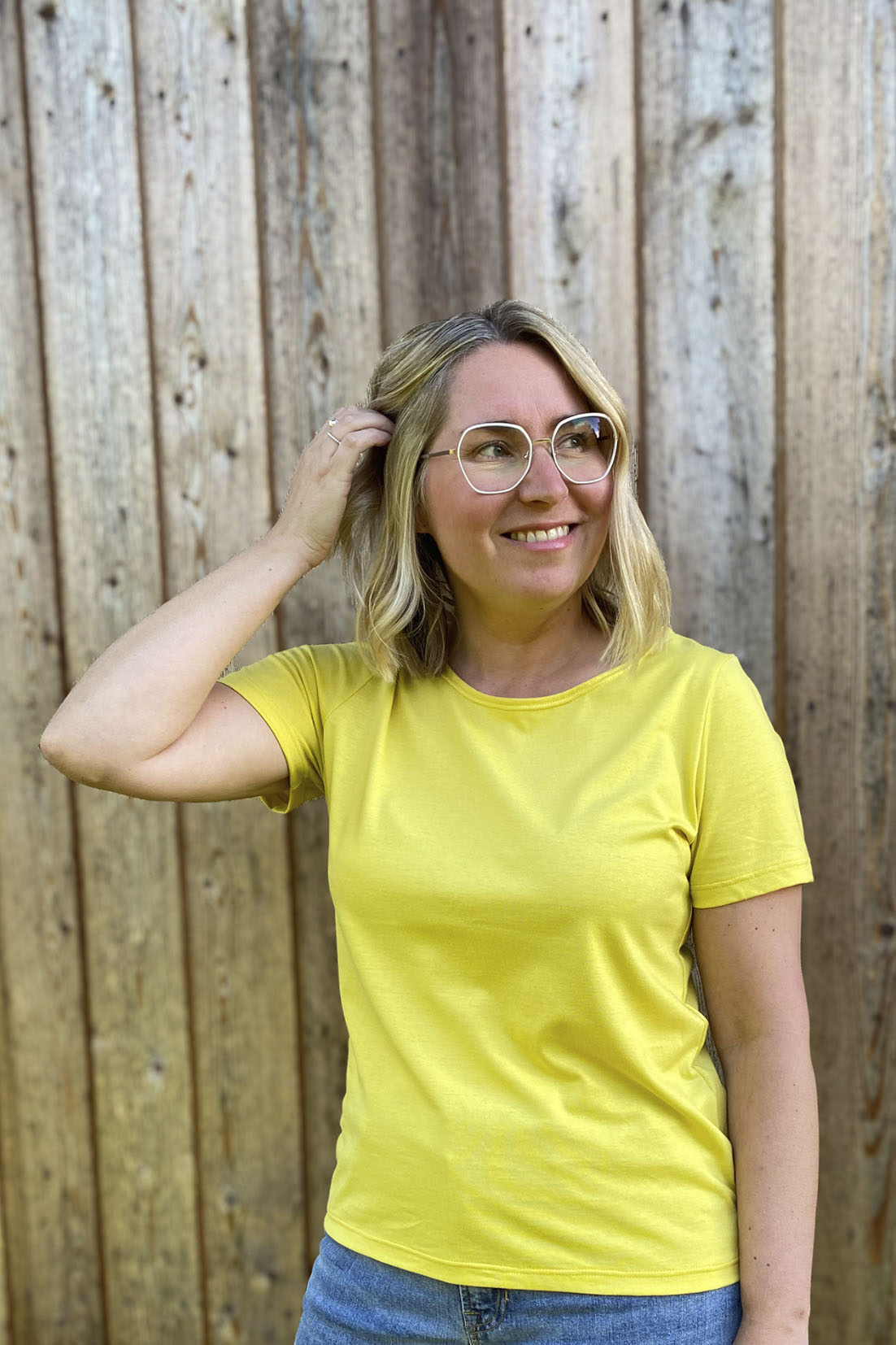 Naisten peruspusero koossa M, värinä sitruunankeltainen.