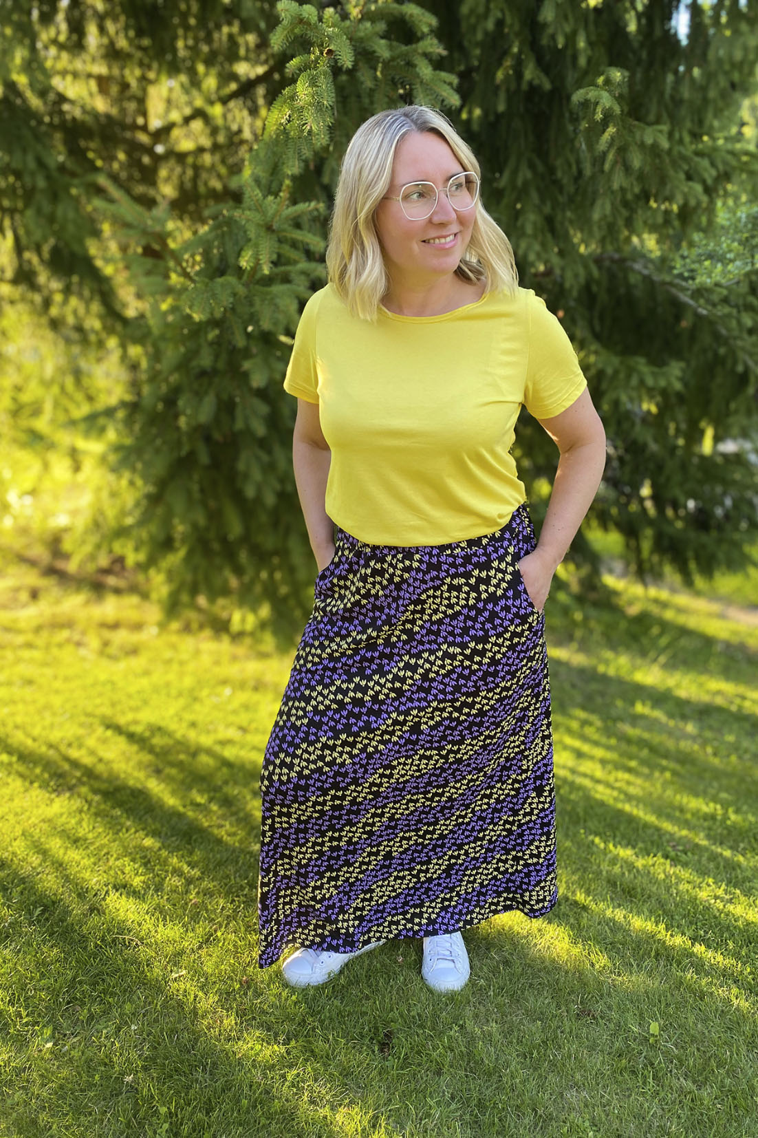 HUOM! Keltainen sävy käy täydellisesti musta/violetti/keltaisen Rose-hameen kanssa ;)